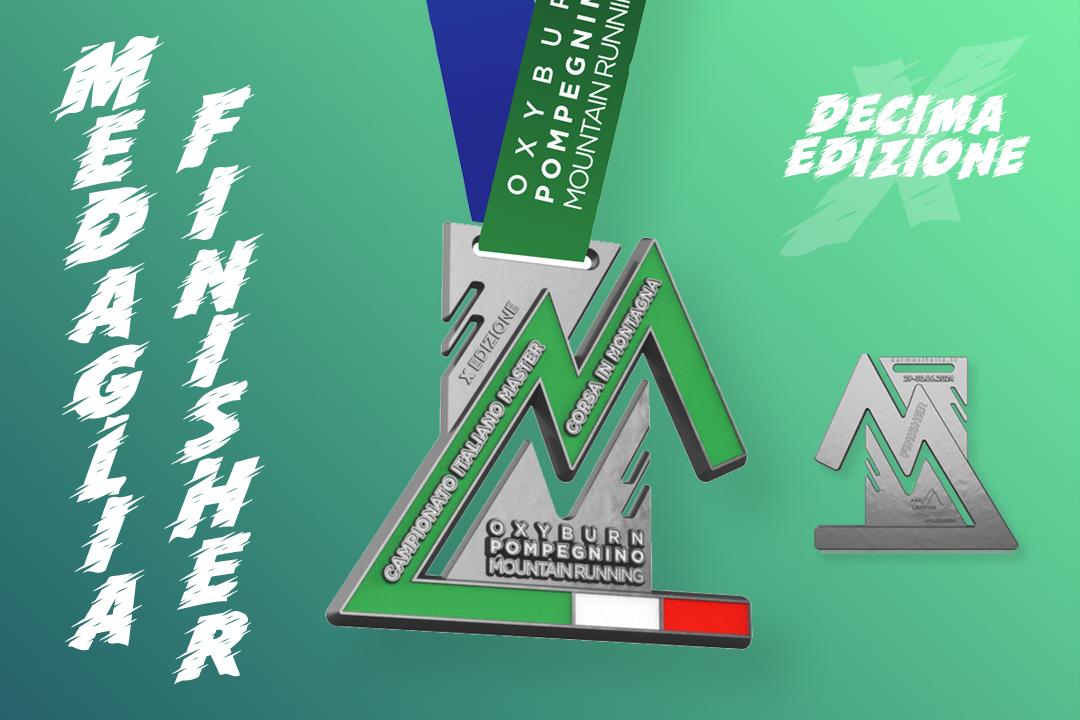 Le medaglie della Oxyburn Pompegnino Mountain Running, realizzate dall’azienda italiana Dal Mas, sono un ritratto della competizione che festeggia il decennale con un’edizione speciale. I finisher potranno mettersi al collo il simbolo delle difficoltà superate, con un profilo che rispecchia l’altimetria del percorso, e i colori della bandiera italiana, vessillo del Campionato nazionale Master di corsa in montagna. Una medaglia davvero unica e imperdibile.